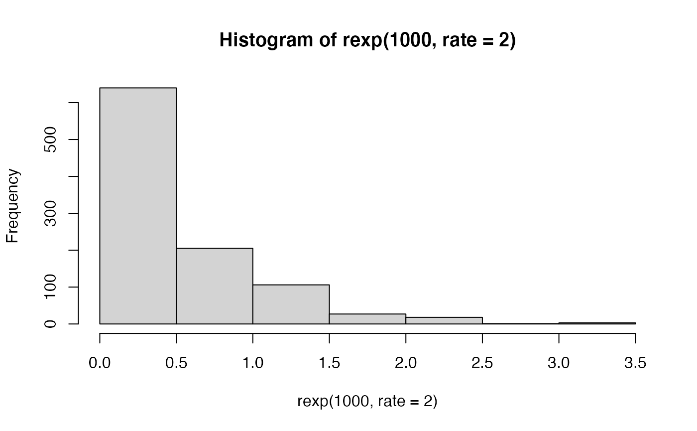 2. Compute the mean, sd, skewness, and kurtosis for a sample of 1000 observations from a right-skewed exponential distribution.