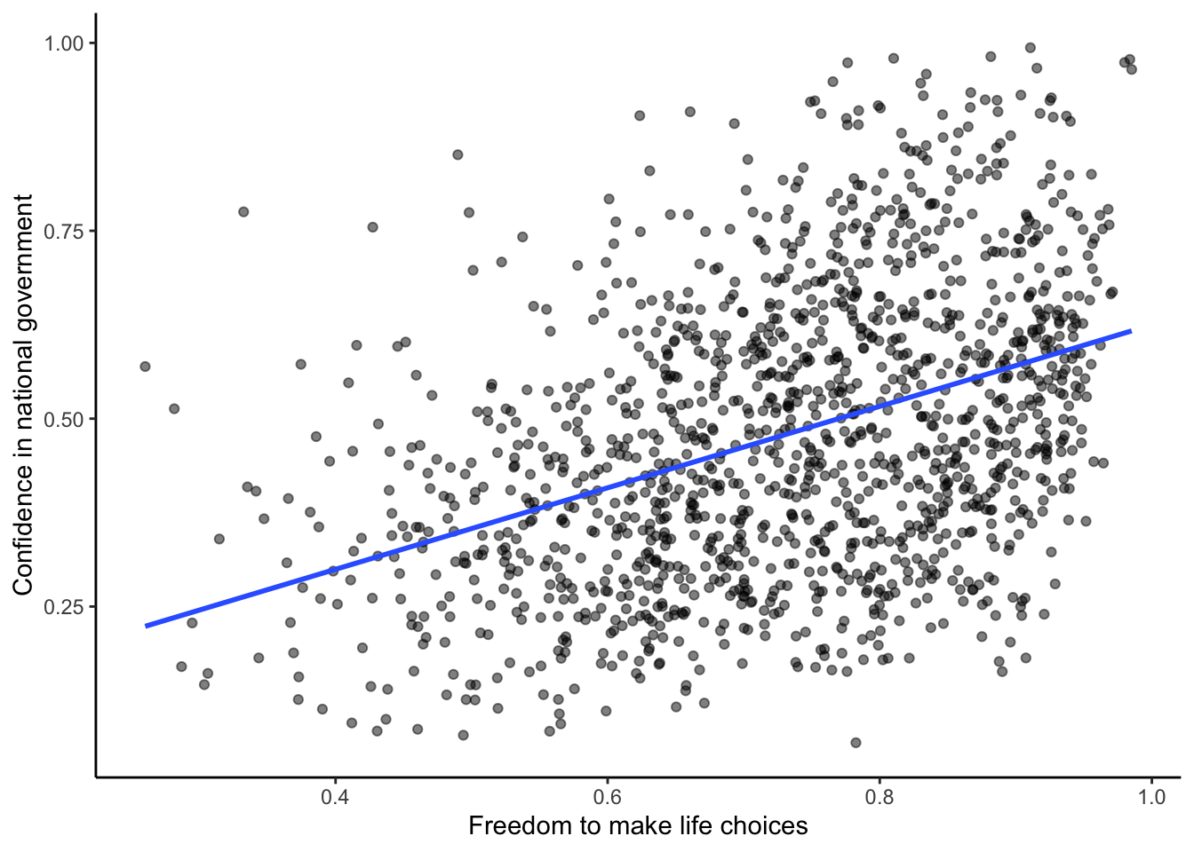 Before we go around determining the causes of happiness, we should prepare ourselves with some analytical tools so that we could identify what causation looks like. If we don’t prepare ourselves for what we might find, then we won’t know how to interpret our own data. Instead, we need to anticipate what the data could look like. Specifically, we need to know what data would look like when one thing does not cause another thing, and what data would look like when one thing does cause another thing. This chapter does some of this preparation. Fair warning: we will find out some tricky things. For example, we can find patterns that look like one thing is causing another, even when that one thing DOES NOT CAUSE the other thing. Hang in there.